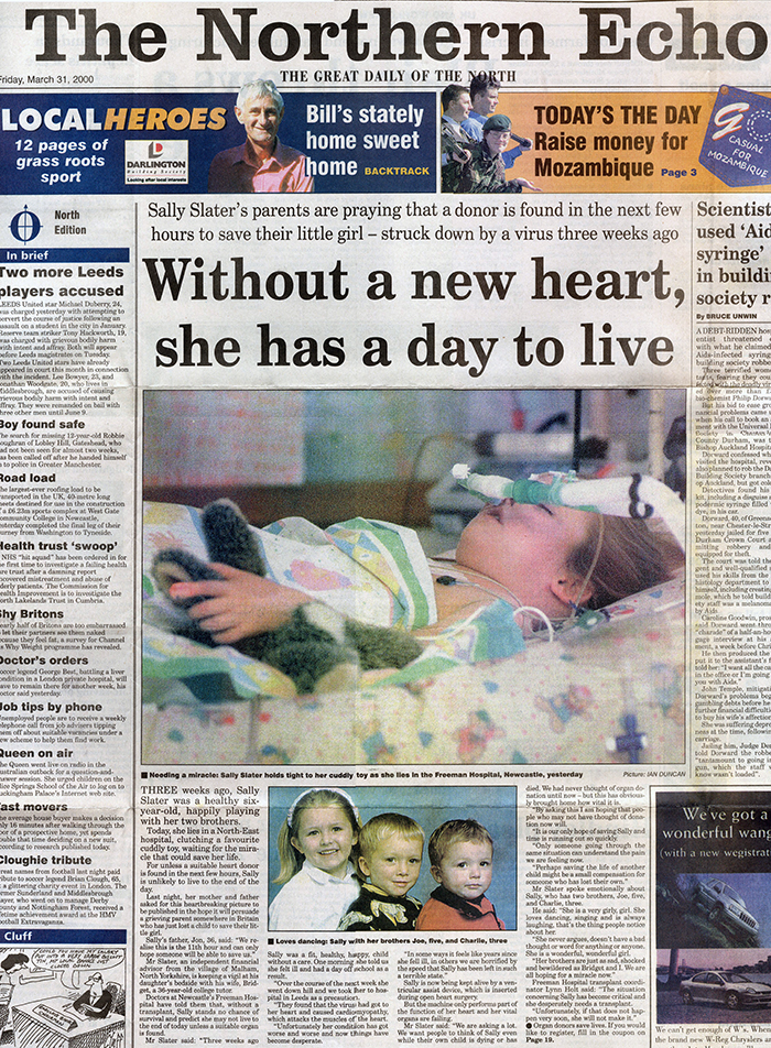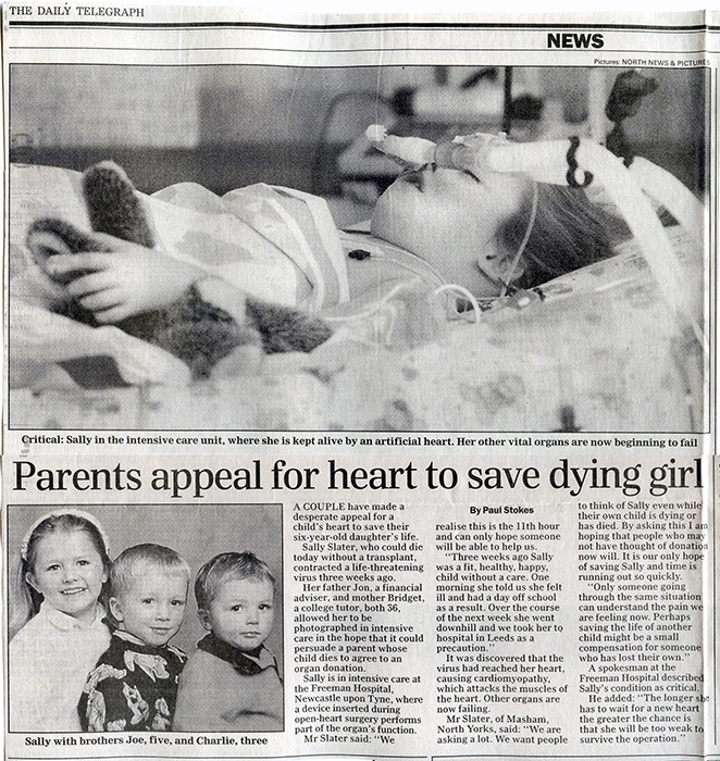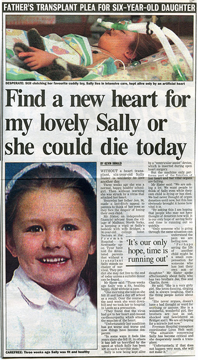 Her name, Sally Slater, will forever be recorded in history because she received a donor organ at the 11th hour and the operation was a success.