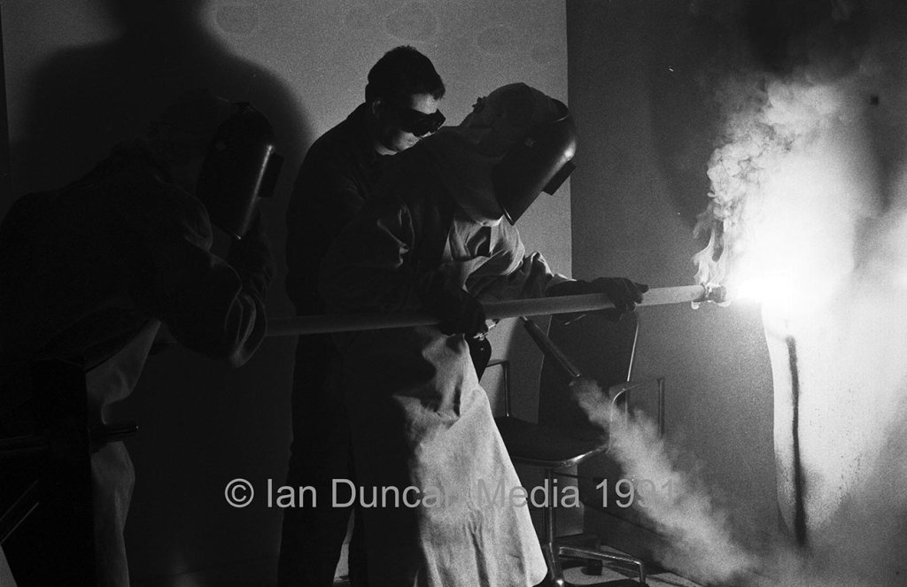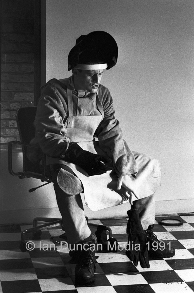 On the second day we moved to Factory Records, the band’s label, in the centre of Manchester for the interior scenes such as them using cutting equipment to get into the safe as well as solo shots of singer Shaun Ryder. As well as meeting the band I did get to meet Factory boss Tony Wilson on that day.