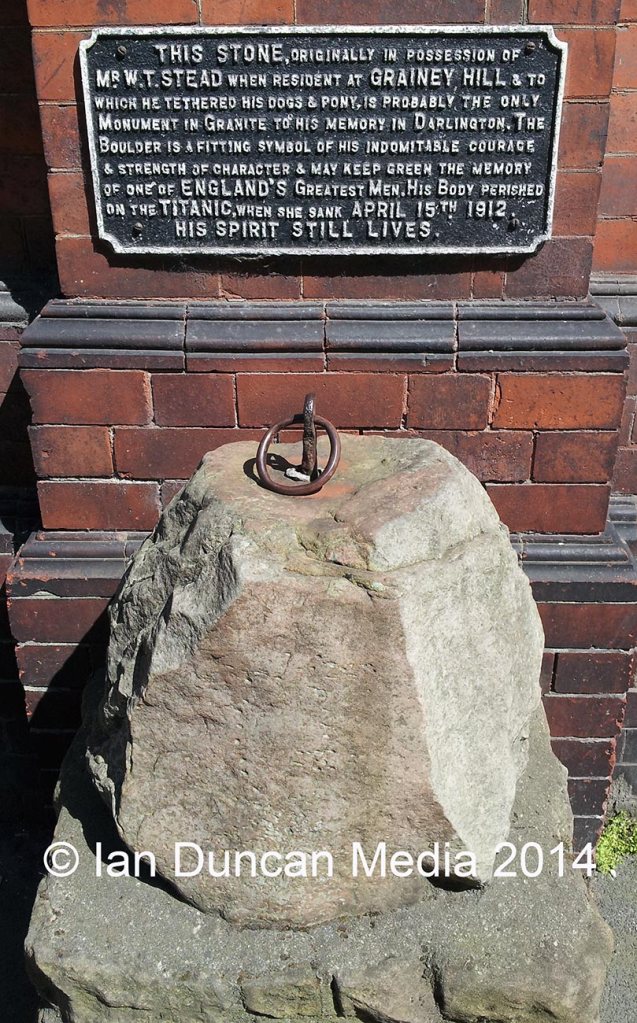 I did get back to Darlington in 2014 when I got these shots and it was good to see that the pub across the road honoured W T Stead and there was a plaque next to the rock where he tethered his pony.