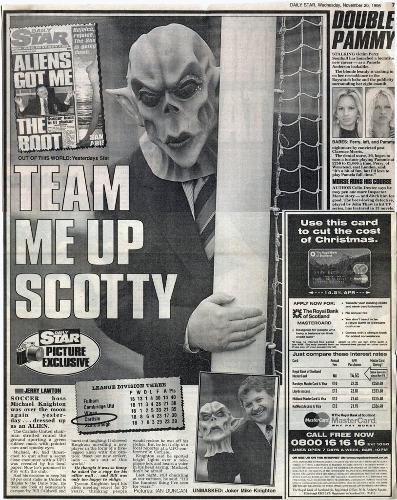 Basically a reporter at the News & Star had produced a story which claimed that the then owner, who had previously had a chance to buy Manchester United before they became the massive club they are now, had been visited by aliens.