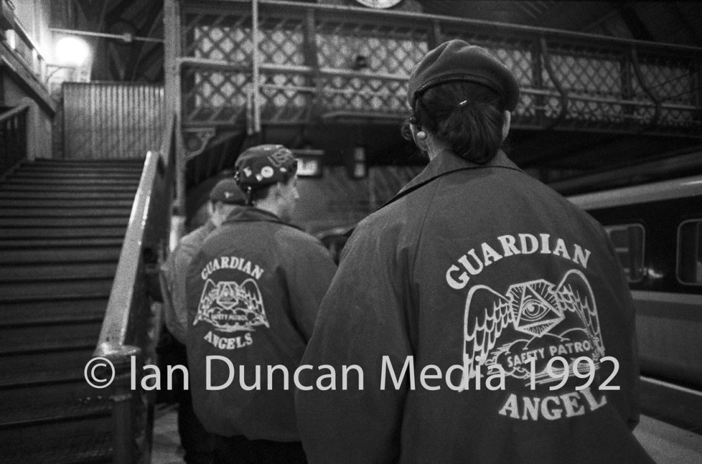 When I was studying photojournalism in Sheffield in the early 1990s I visited London a few times and I did notice that the Guardian Angels actually had regular patrols of the underground to promote passenger safety.