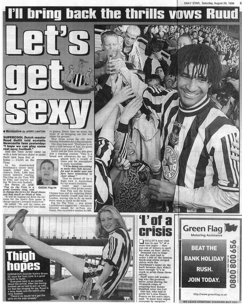 When it was announced that the former Dutch footballer Ruud Gullit was to be the next Newcastle UFC manager we decided to do a shot of a female model with a clog on her foot with the Tyne Bridge as a backdrop.
