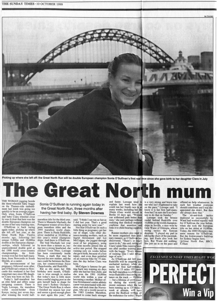 Getting back to the Great North Run in 1999 I covered the launch of the Great North Run and took this shot of Sonia O’Sullivan with the Tyne Bridge in the background. And it was used by the Sunday Times.