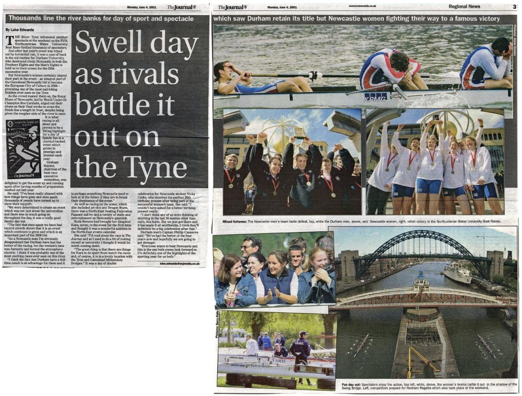 Around the Millennium, or the year 2000, a rival to the southern University Boat Race was launched which pitched Durham against Newcastle universities. I quite like this shot of the two boats heading towards the Tyne Bridge. And it got a decent show in the Journal.